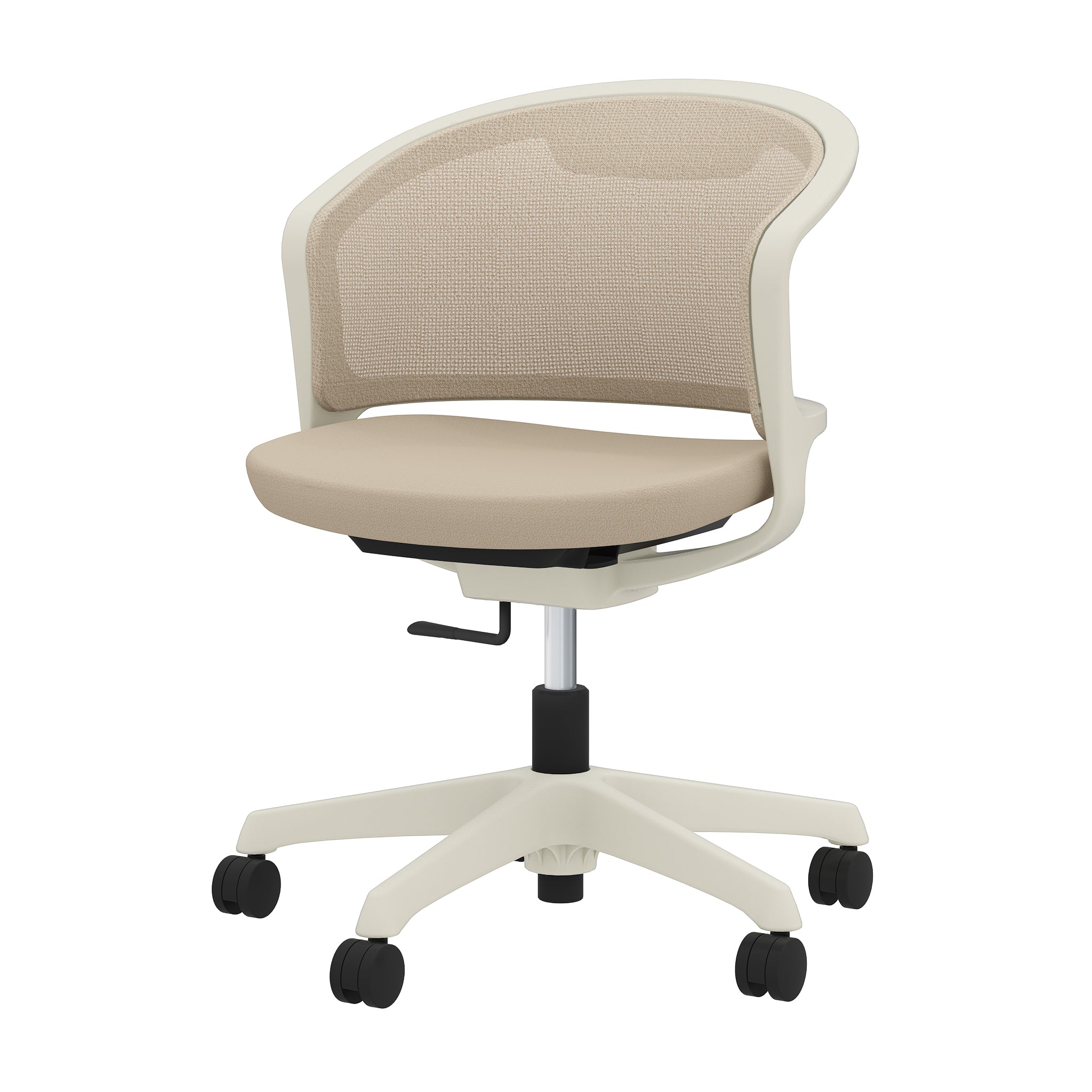 曲線を持ちつつも、シャープさも感じる背フレームのデザイン。メッシュ素材を採用することで、軽やかな印象の背もたれを実現しました。