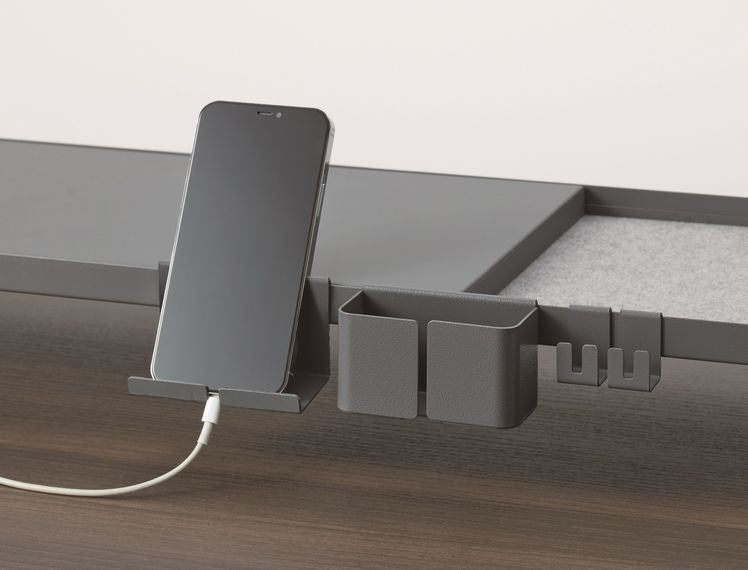 散らかりがちな仕事道具や小物をまとめることで作業効率アップ。縦の空間を活用することで狭いデスクでも天板面を広く使えます。