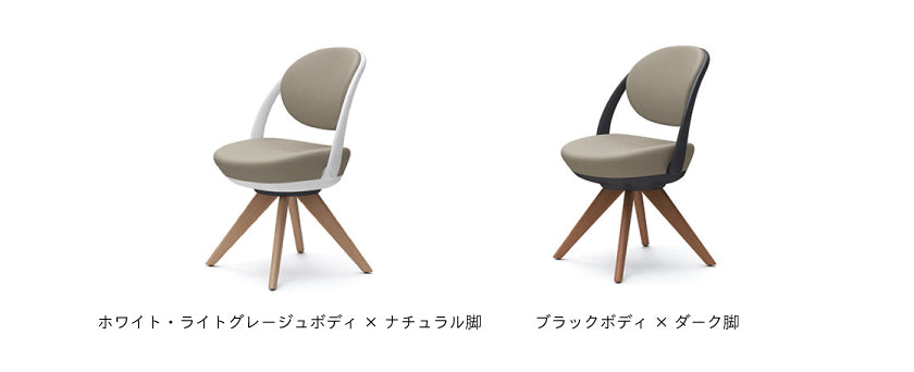 スチール4本脚・木脚タイプも座面が回転します。