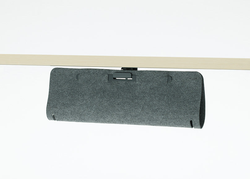 フェルト製の配線受けは、デスクサイドの横側と天板の奥側のどちらにも取り付け可能です。