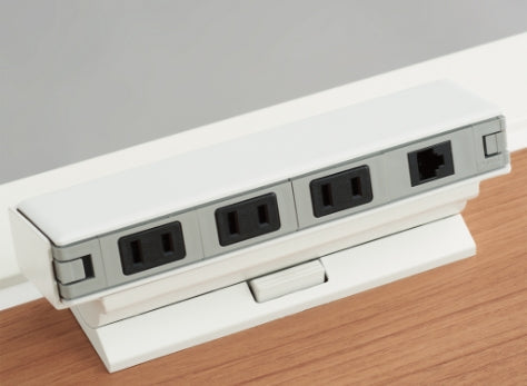 天板の配線孔に装備することで、机上面から電源がとれます。