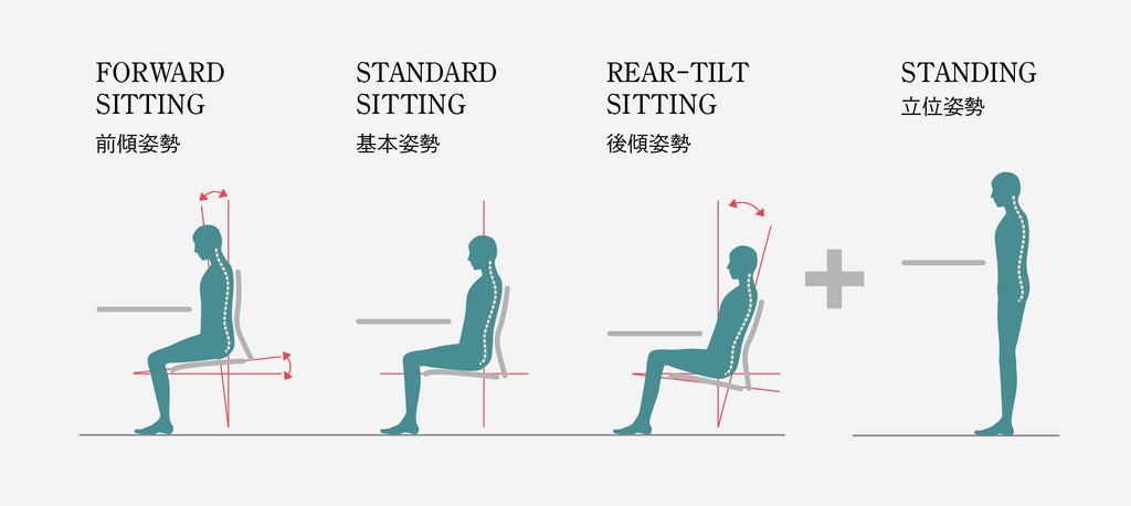 - 好ましい姿勢を維持するため、座面の奥まで腰掛け、背もたれに背中を十分にあて、頭が身体の真上になるように