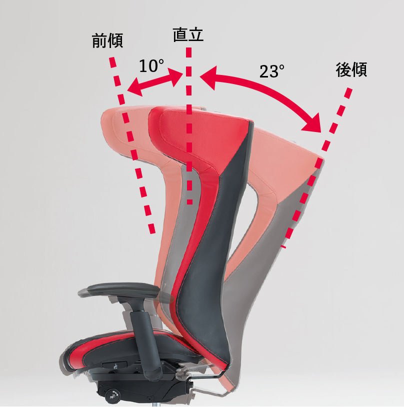 前傾機能付背座シンクロリクライニング機能を搭載。背と座はシンクロしてリク