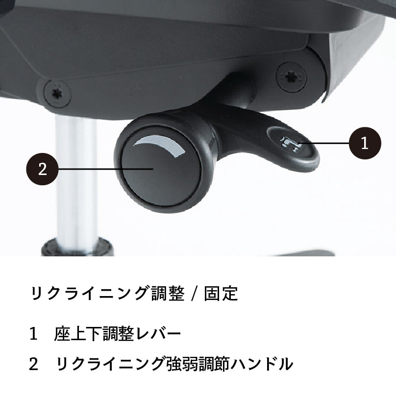座面の右下にあるレバーを持ち上げることで、座面の高さ調節が可能です。(ストローク:100mm)