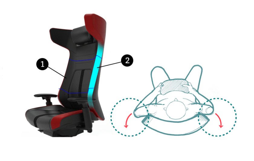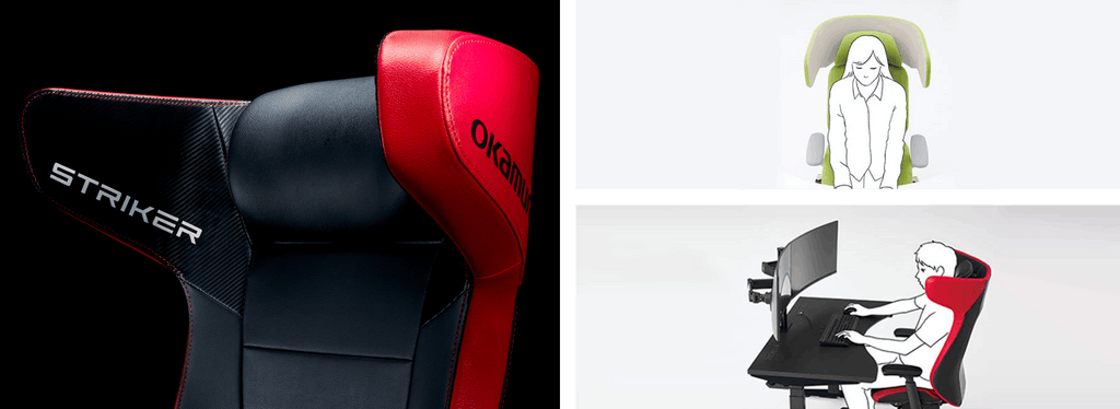 オフィスシーティングSylphy用に開発された機構をストライカーEXタイプにも採用。周囲の視線をほどよくさえぎります。圧迫感を感じることなく、適度な「こもり感」を実感でき、集中してゲームをプレイできるようにデザインされています。