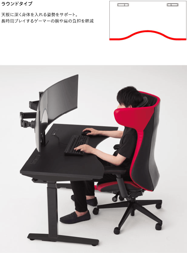 わたしたちは、オフィス環境に提供してきた数多くの製品開発の知見を活かしてさまざまなゲームの種類によって異なる姿勢[POSTURE]をシーティングとデスクで適切、かつ快適にサポートするゲーミングファニチュアを実現します。