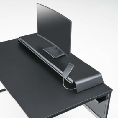 シンプルさと見た目の軽さを持たせつつ、高い堅牢性を実現したデスクです。天板の耐荷重は150kg。また、天板奥に配線用の切り欠きを設けることでワイヤリングが容易で、モニターアームのクランプもデスク本体からはみ出すことなく設置が可能です。